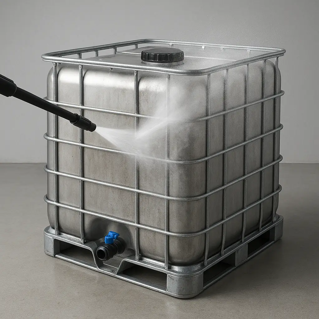 Ob Kunststoff-IBC's, ASP's oder ASF's bis zu 1500 Liter - reinigen wir gründlich und zuverlässig mit bis zu 1600 bar.